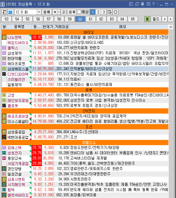 25년 12월 2일(화) 상위트레이더 관심종목+[로봇/바이오/보안/반도체 등] 주도주 재료 정리 + 포트폴리오 대응전략